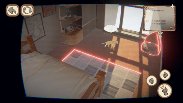 可以利用激光的引导猫咪需要做什么,不需要做什么,出现禁止的事项可以点击左上角的重置按钮重新开始。