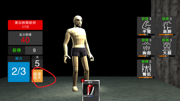 你可以看到锻炼数值没了就显示肌肉拉伤了,需要合理的分配哦。