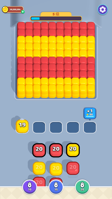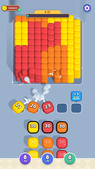 1、玩家需要合理规划射击顺序,为保证每一次射击都能达到最佳效果,游戏提供了各种不同类型的方块。