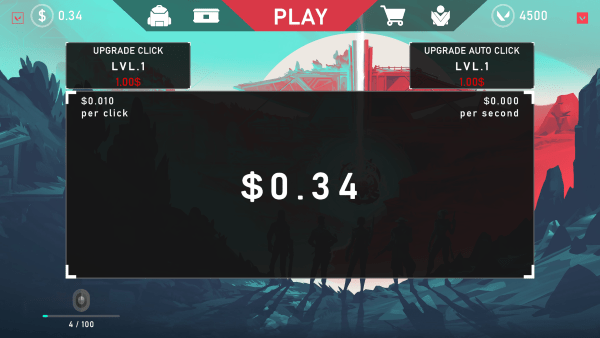 我们点击play,在这个界面你需要点击屏幕来增长你的钱,无聊就点吧。