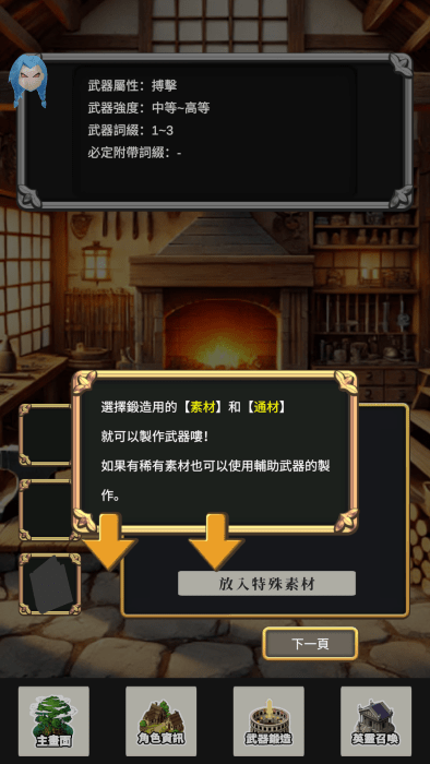 武器锻造师游戏在这里打造你的武器,无限的刷词条,然后开始地下城冒险,轻松的击败怪物,获得其中的资源在次打造你的武器,你的目的就是这样的,无限的锻造你的装备,只要好的词条,直到打造出神器来,一起来看看吧!