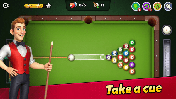 解锁新的球杆、台球桌,并在关卡中前进