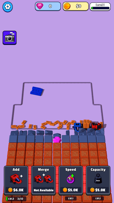专业建筑模拟器3d游戏英文名Pro Construction: Simulator 3D,点击屏幕让你的火车行动起来,同时去破坏墙体获得砖块,在火车经过的地方来搭建你的建筑物,都是一砖一瓦手动完成的,看看你的建造物体是什么吧,是不是很好奇,升级你的火车,让其行动起来吧,给你更多的体验,一起来看看吧!