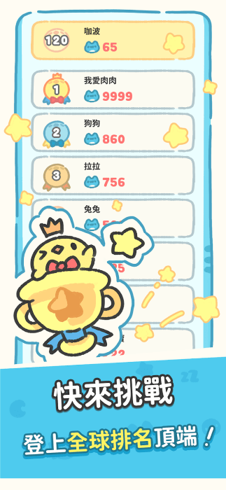咖波叠叠乐最新版是一个轻松又有趣的休闲叠叠乐游戏!这次,我们可爱的咖波需要你的帮助,才能攀上新的高度。只需简单操作,把每一只跳上来的咖波稳稳地叠上去!挑战你的极限,看能堆叠多少层!