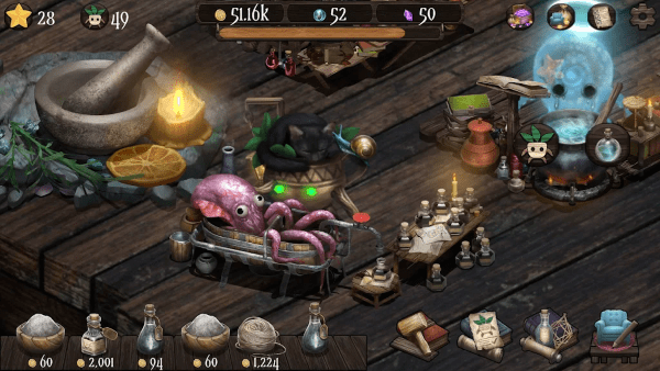 巫术工坊最新版是一个经营你的魔法屋游戏,制作、收集和放松,将旧小屋工作室变成魔法小动物的熙熙攘攘的避风港。从老女巫那里继承一座迷人的小屋,装饰它,并收集40多种可爱的生物——从顽皮的幽灵到神奇的花园蔬菜。让它们创造强大的药水、卷轴和护身符!