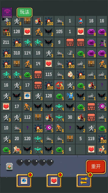 2.怪物右下角为它的级别,消耗你等值的血量,消灭它