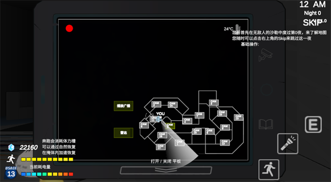 1、玩家将扮演夜间保安通过监控摄像头观察餐厅各区域动向。