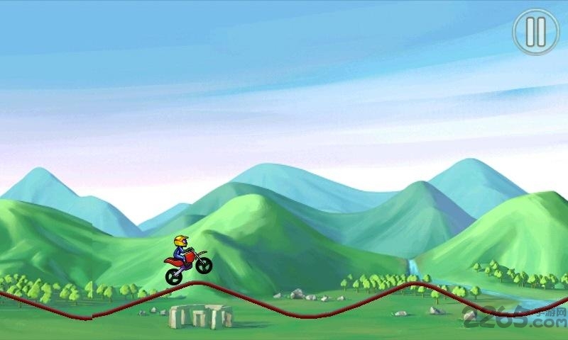 2、简单的控制方式:按屏幕加速,倾斜手机控制摩托的倾斜方向;