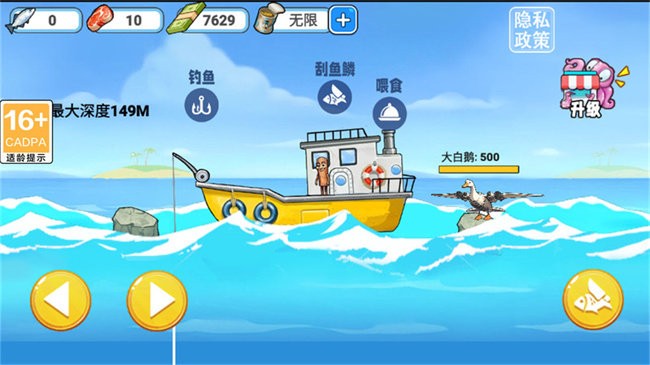 逐渐地获取更多的鱼类便可提升渔船的等级,进而可解锁相关功能。