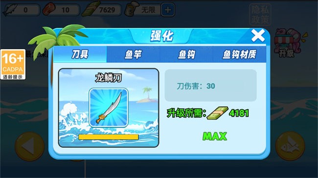 3、升级自己手中的各种道具来帮助轻松高效进行钓鱼。