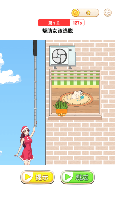 你可以拖动一切可以拖动的,让女孩利用绳梯到楼底。
