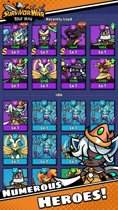 在我们的游戏中,您可以招募不同类型的英雄来帮助您击败敌人。