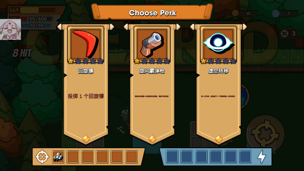 打怪会掉落经验值,升级之后可以选择你的天赋技能。