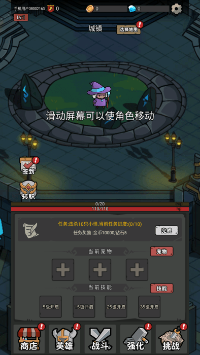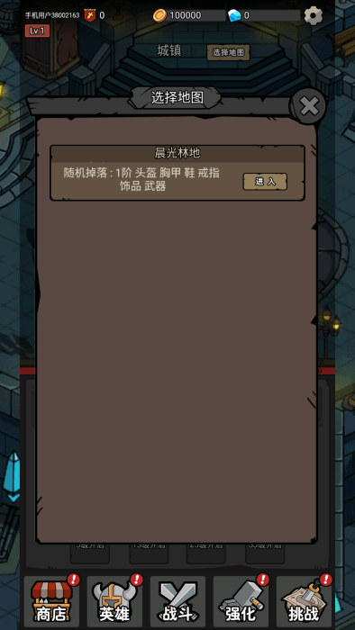 点击上面的选择地图,进入第一个地下城,刷经验和装备。