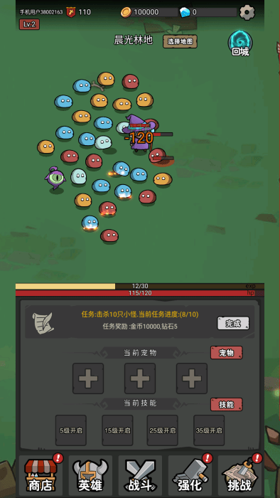 角色会自动锁定并攻击敌人,玩家只需掌控走位,享受无压力的刷怪冒险,感受极致割草快感。