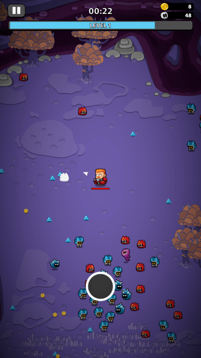 滑动你的屏幕移动走位,自动的攻击怪物。