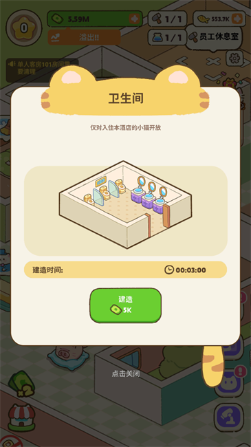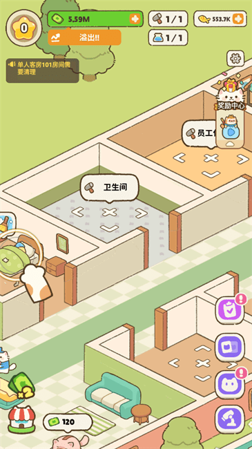 2、丰富的升级内容:玩家可以通过解锁和升级各种设施来扩张自己的酒店规模,增加客流量和收入。