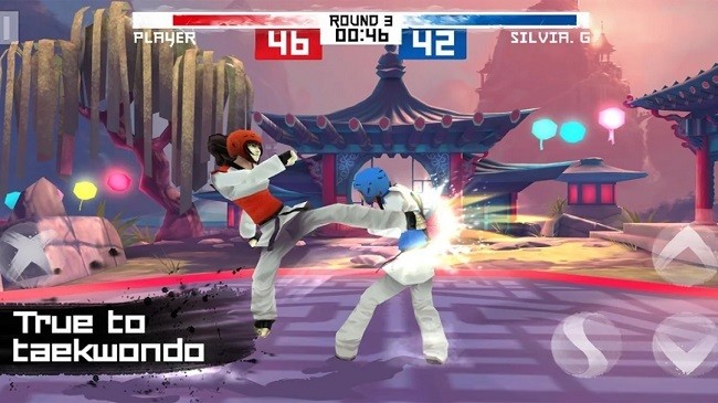 发现踢朋友的屁股的喜悦和证明你的价值在跆拳道比赛中跆拳道战斗机。全球邀请赛,首届手机游戏跆拳道。基于真实的动作捕捉跆拳道运动和奥运会的规则,这是尽可能接近你能拿出实实在在的东西。