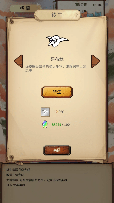 游戏中提供转生、转职等功能,