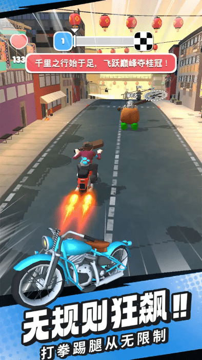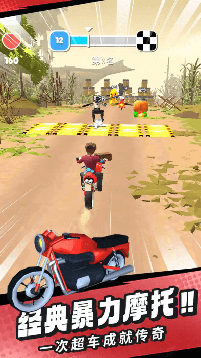 刺激摩托最新版是一个模拟摩托驾驶游戏。核心玩法包括使用拳脚或者使用道具攻击对手,同时在赛道上保持高速前进。游戏中包含多个角色供玩家选择,此外,还有多种赛道可供挑战,如城市公路、经典山脉、城镇街道、山腰公路和沿海公路等。