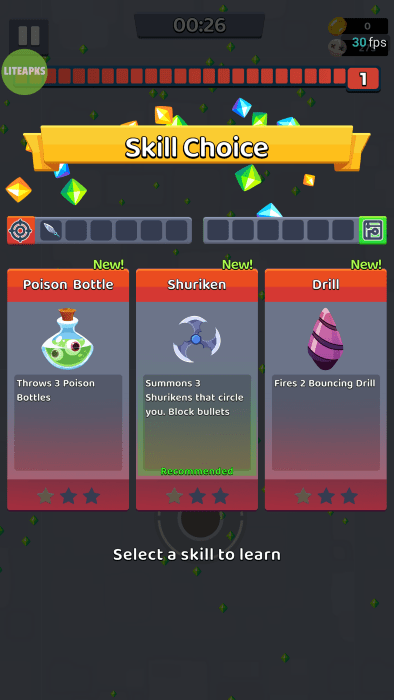 杀怪之后就能获得经验升级了,技能和天赋都能选择。