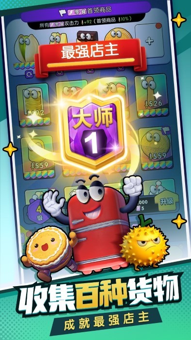玩家可以在游戏中发掘多元商品,从新鲜的水果、实用的家用电器,到精致的家具、时尚的服饰以及美味的零食。玩家只需要前往商品图鉴解锁高星商品,增加高收益高攻击力的商品进货几率,再策略搭配店长技能以提升商店收益,进而在“购物车之战”中崭露头角,成为名副其实的“购物之王”。