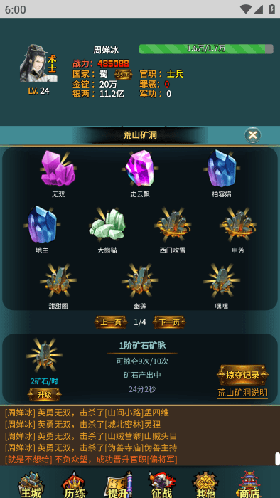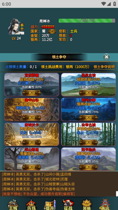 然后可以开始历练了,选择你的关卡战斗。