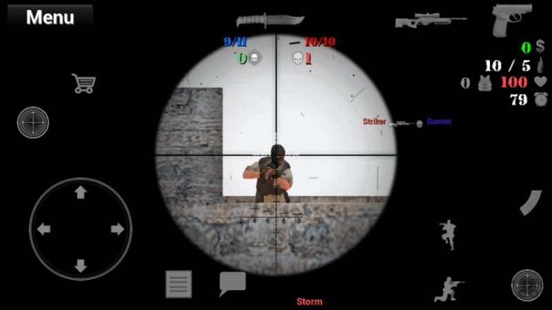 4、进入后你将以第一人称的视角进行战斗,左边控制角色移动方向,右边控制射击、换枪等操作