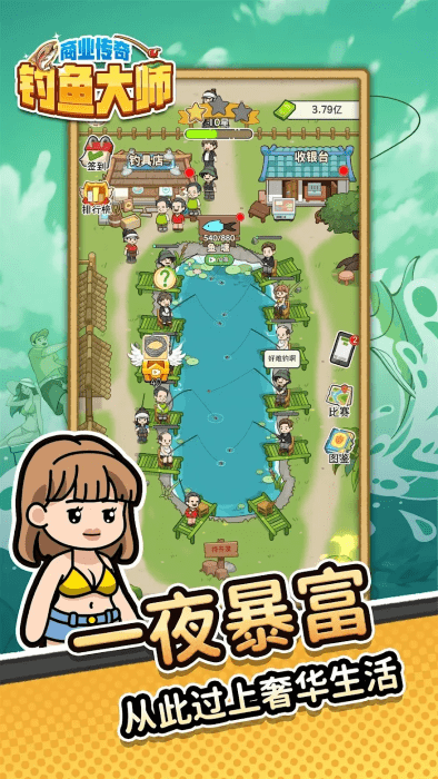 商业传奇钓鱼大师游戏成为塘主扩建你的鱼塘,吸引更多钓鱼佬来这里进行钓鱼,还能建设更多完善的商铺,给你带来更多盈利的效果,逐渐的发展起来,给你更多的体验,还有很多的乐趣在这里,非常实在的,一起来这里看看吧!