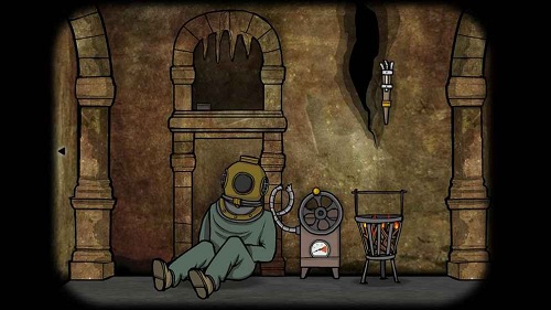 在游戏中玩家似乎是被关到到了一个海底洞穴当中,游戏中除了玩家之外,还有一个身穿着厚重的潜水服的人,看起来给人一种非常恐怖的感觉,