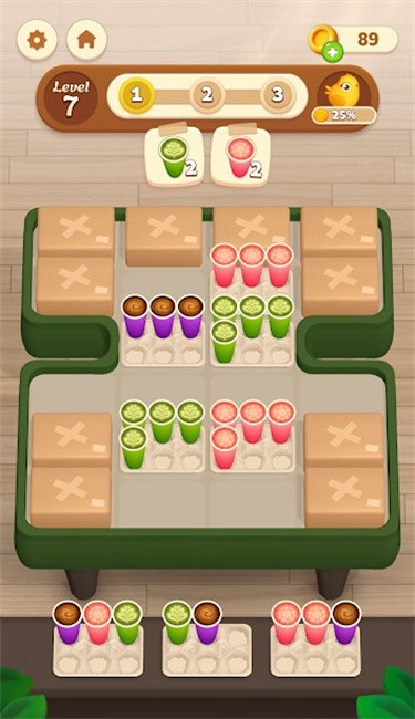 1.将咖啡包放在板子上,相同的咖啡类型放在一起,达到6包相同类型的咖啡后即可消除(注意:放置咖啡包之后不可移动)