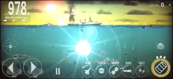 游戏一开始需要充能的,当有潜艇出来就需要精准的放置水下炸弹。