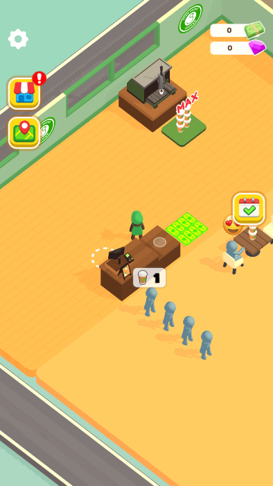 模拟咖啡厅最新版是一个咖啡类的经营游戏,在这个咖啡店大亨游戏中打造你自己的咖啡帝国。出售各种饮料,保持店铺清洁,让你的顾客满意。扩张你的咖啡店可以让你雇佣员工,购买新桌子,并吸引更多顾客!