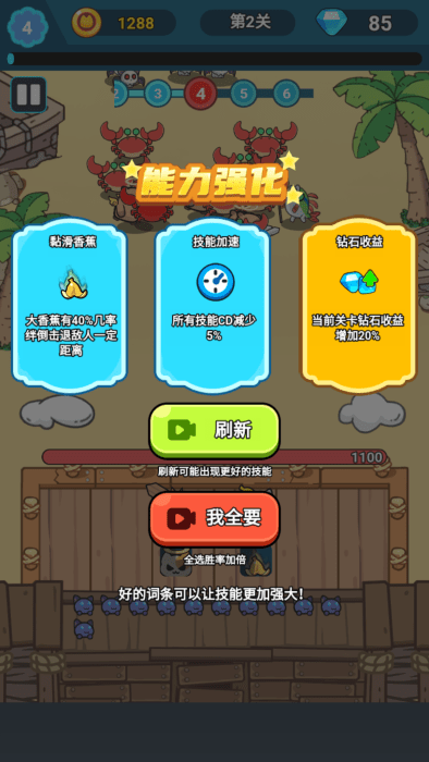 1、每个随机事件都需要你灵活地承担风险,开始战斗,带领你的水豚消灭所有敌人。
