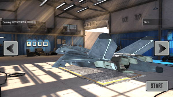 然后选择你的战机开始游戏,这里无限金币,随便的买。