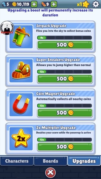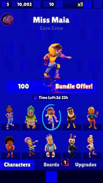 4、人物角色并没有特别的技能属性,若是游戏币不充裕的小伙伴们,建议奖游戏币用于购买滑板和道具。