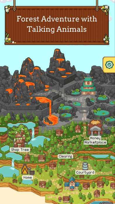 森林寓言游戏这是一个像素的世界,但是不缺少游戏的玩法,在你的森林中进行模拟建造,打造属于自己的小屋,还可以经营小店,为各种动物提供吃的喝的,主要一个赚小金库的游戏,合理的去安排吧,一起来看看。