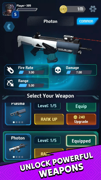 升级系统:使用收集的硬币和辐射代币来增强士兵的属性和装备。