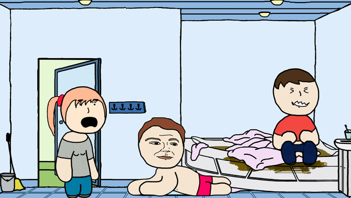 8、如果在时间内没有拉完,就会放屁直至弄到裤子上,则游戏失败。