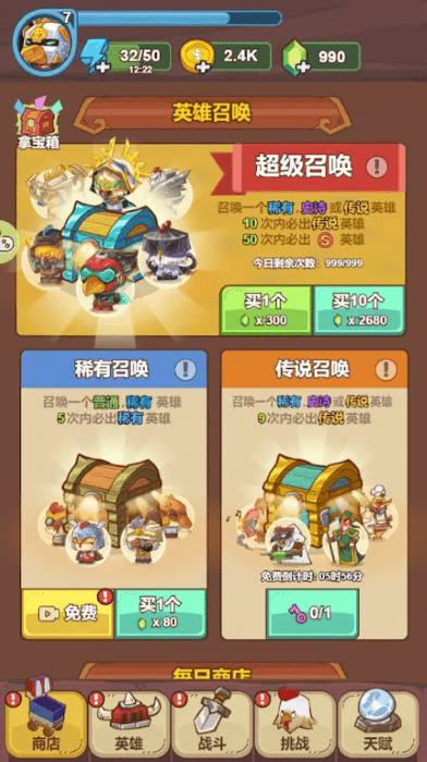 可以选择你的英雄,解锁更多的能力,装备还是要装备上的。