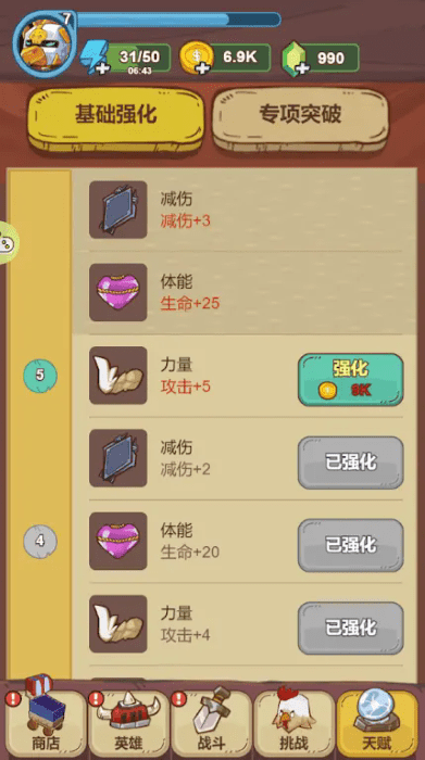 你再主界面可以选择关卡,还有提升强化自身的能力。