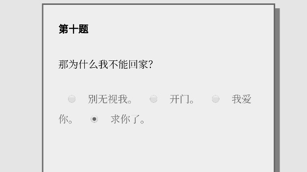 通过答题的方式来回答每一个题目,然后完成游戏任务,几个不同的问卷,玩家将在游戏里面一点点解答问题