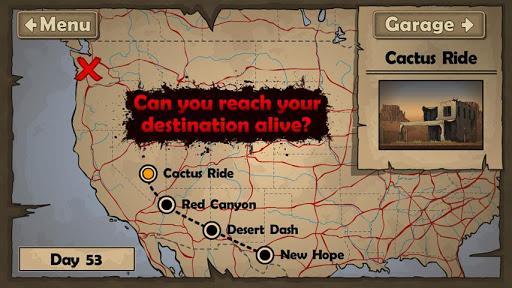 为了躲避身后追赶的大批僵尸,玩家所驾驶的赛车要在沙漠中狂奔,最终要安全抵达军队庇护所。一路上我们可以操控赛车进行各种特技动作,当然不是为了耍酷,而是为了摆脱追赶的僵尸。玩家可以改装升级自己的赛车,并为其配备各式各样的武器,游戏中只有不断蹂躏僵尸才能获取高分。虽然画面操作上亮点不多,不过略带恶搞的黑色幽默风格也别有一番韵味.