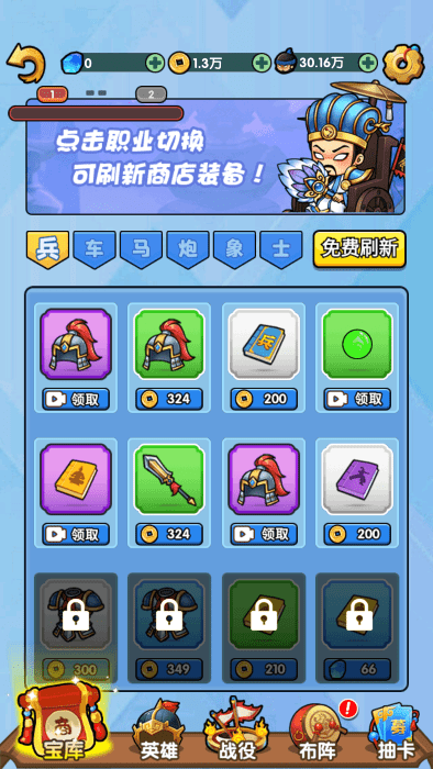 这里是抽取英雄的地方,需要消耗铜币抽取,也能十连抽出英雄。
