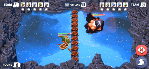 当弹药装满后,释放屏幕向对手的海盗船发射子弹。