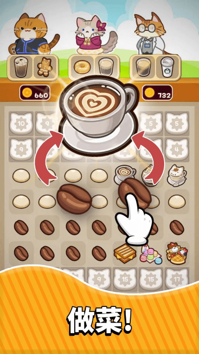喵趣咖啡馆合并盛宴最新版在这里,你可以通过合并各种食材来制作面包和咖啡,并赚取金钱来经营和扩展这个更加梦幻的咖啡厅。享受合并解谜游戏的乐趣,随着游戏进展,你可以将咖啡厅扩展成更加豪华和精美的建筑物!