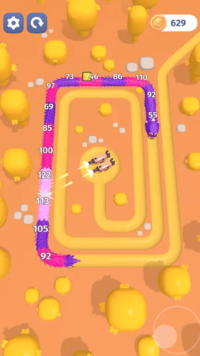 蛇被分成几段,每段都有自己的生命值。战略性地瞄准并消除这些部分,以削弱蛇并降低其整体生命值。