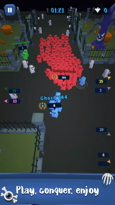 幽灵军团最新版是一个快节奏街机游戏。您可以体验控制最大的幽灵人群的快感,在其中合并、聚集和粉碎对手,以壮大您的军队,成为鬼城的不可阻挡的主人。单人游戏或在多人离线模式中挑战朋友。
