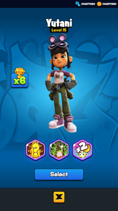 除了躲避障碍物外,我们还需要尽可能的多拾取铁轨上出现的金币,金币可获得更高的游戏得分,且可用于购买其他的角色。
