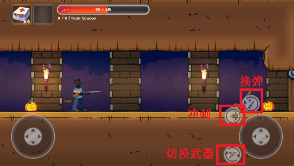 然后可以切换武器,切换弹夹,还能一段小的冲刺按键。